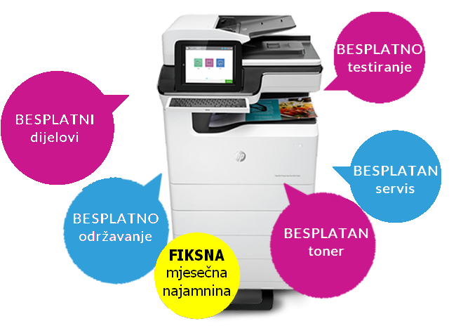 Fiksna mjesečna najamnina uključuje uređaj, instalaciju, potrošni materijal te brzu i učinkovitu podršku.